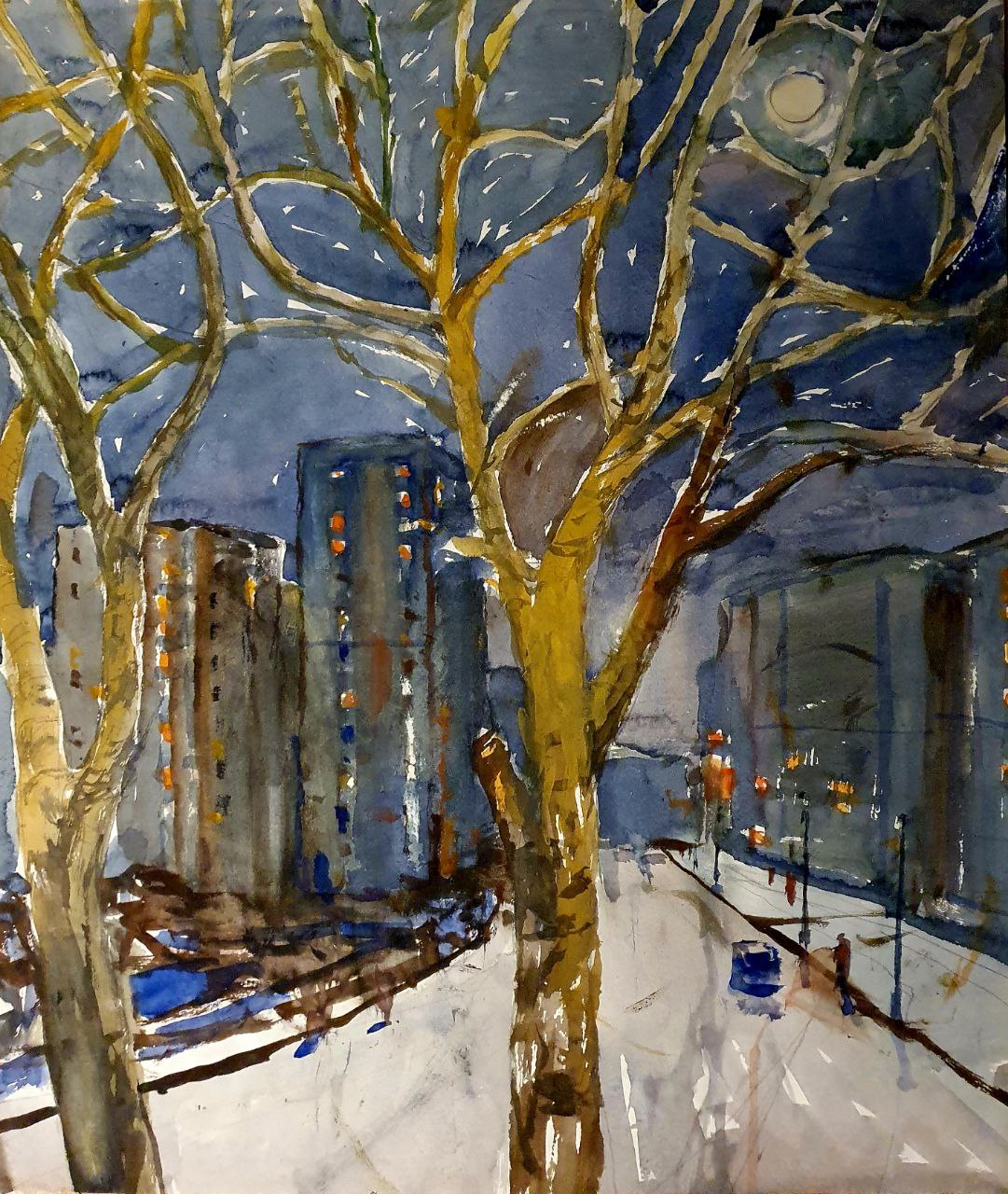 Поздняя работа Николая Волкова, известного художника-акварелиста, теоретика искусства, автора книг «Восприятие предмета и рисунка» (1950), «Цвет в живописи’ (1965), «Мысли об искусстве» (1973), «Композиция в живописи» (1977).