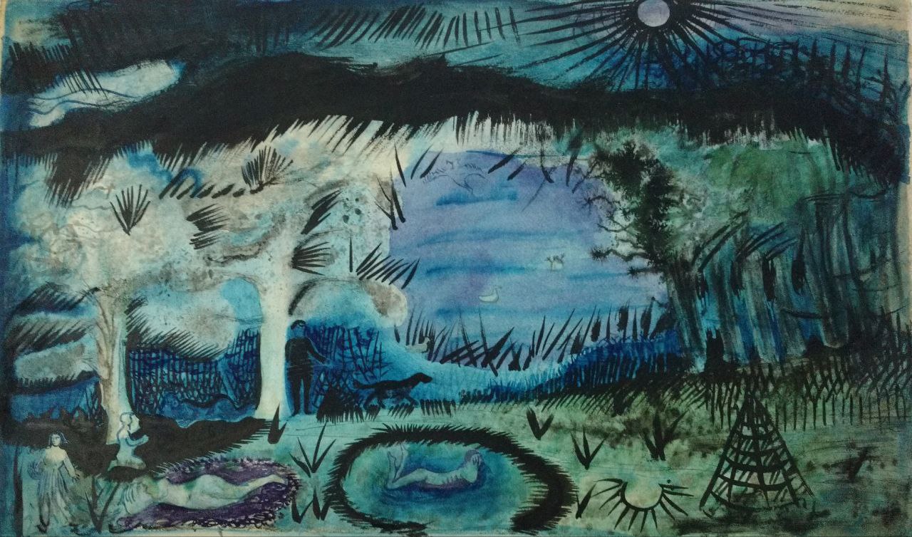Кто эти женщины, купающиеся в лунном свете? Неужели в самом деле русалки? Разве это может быть? А художник как будто не оставляет нам выбора — как ещё понять эту синюю лужу лунного света на берегу лесного озера и как прочитать отражение ночного светила на земле, как будто его начертила там рука одного из этих бледных, голых людей? Кто они такие? Что открывается охотнику в эту ночь?
